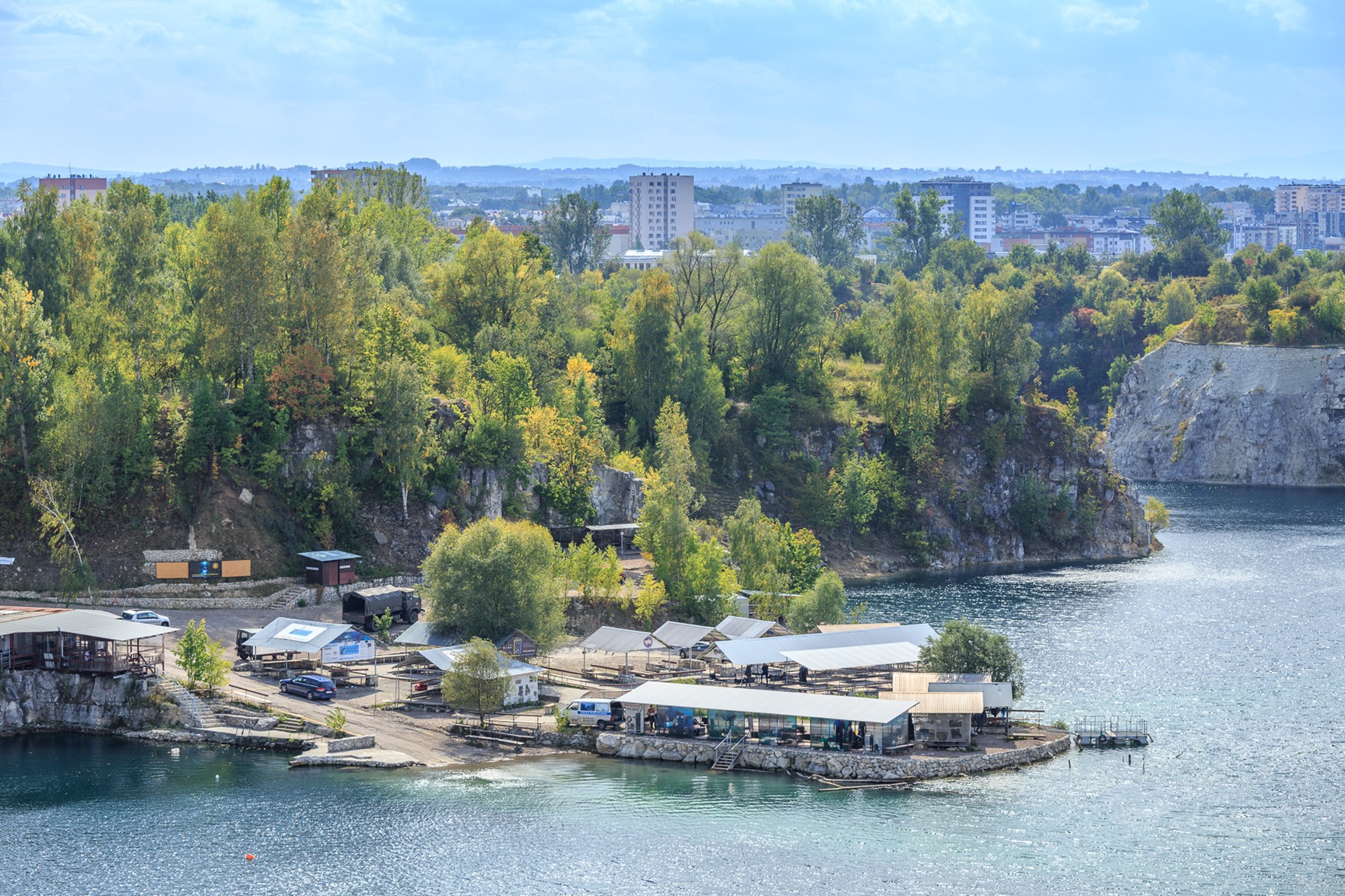 Pośród skał i wapiennych urwisk znajduje się Zalew Zakrzówek – zbiornik wodny powstały na miejscu opuszczonego kamieniołomu. Składa się z dwóch basenów (zbiorników) połączonych przesmykiem i charakteryzuje się dużą głębokością, miejscami dochodzącą do ponad 30 metrów. Od 2023 roku dostępne są oficjalne kąpieliska nad małym zbiornikiem Zakrzówka – powstały pływające baseny o różnych głębokościach, od płytszych miejsc dla dzieci, po zbiorniki sięgające kilku metrów. Baseny zostały otoczone drewnianymi pomostami, co czyni je atrakcyjnym miejscem na letni wypoczynek. Warto jednak zaznaczyć, że kąpiel w głębszych częściach Zalewu do niedawna była zabroniona – woda, urwiska i ograniczona widoczność stanowią zagrożenie. Nurkowanie jest dozwolone pod nadzorem i w wyznaczonych miejscach, a w wodzie można zobaczyć zatopione przedmioty jak bus, fiata, furgonetkę czy starą przebieralnię.